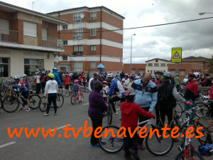 Cerca de medio millar de personas han participado en la mañana de hoy en una nueva edición del Día de la Bici organizado por el Ayuntamiento de Benavente. Un día un tanto inquietante en el aspecto climático con un poco de todo, viento, amenaza de lluvia con algunas gotas en forma de granizo, sol y frío mucho frío que
