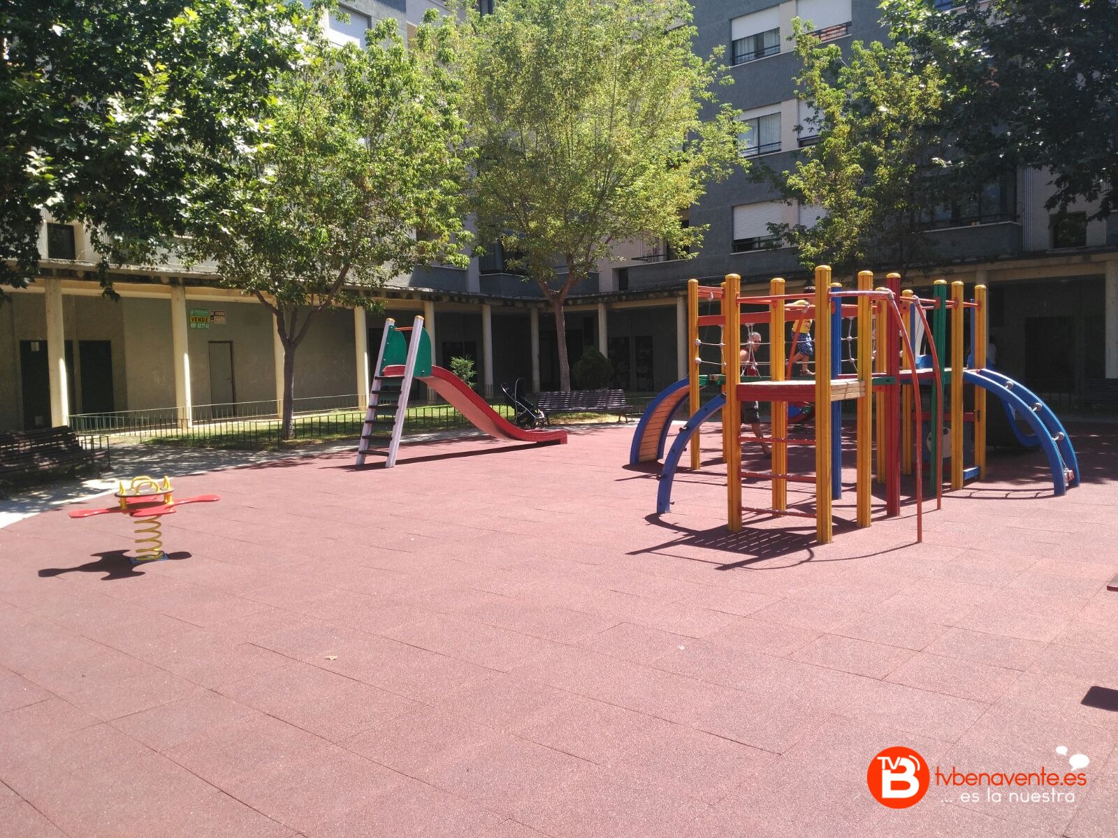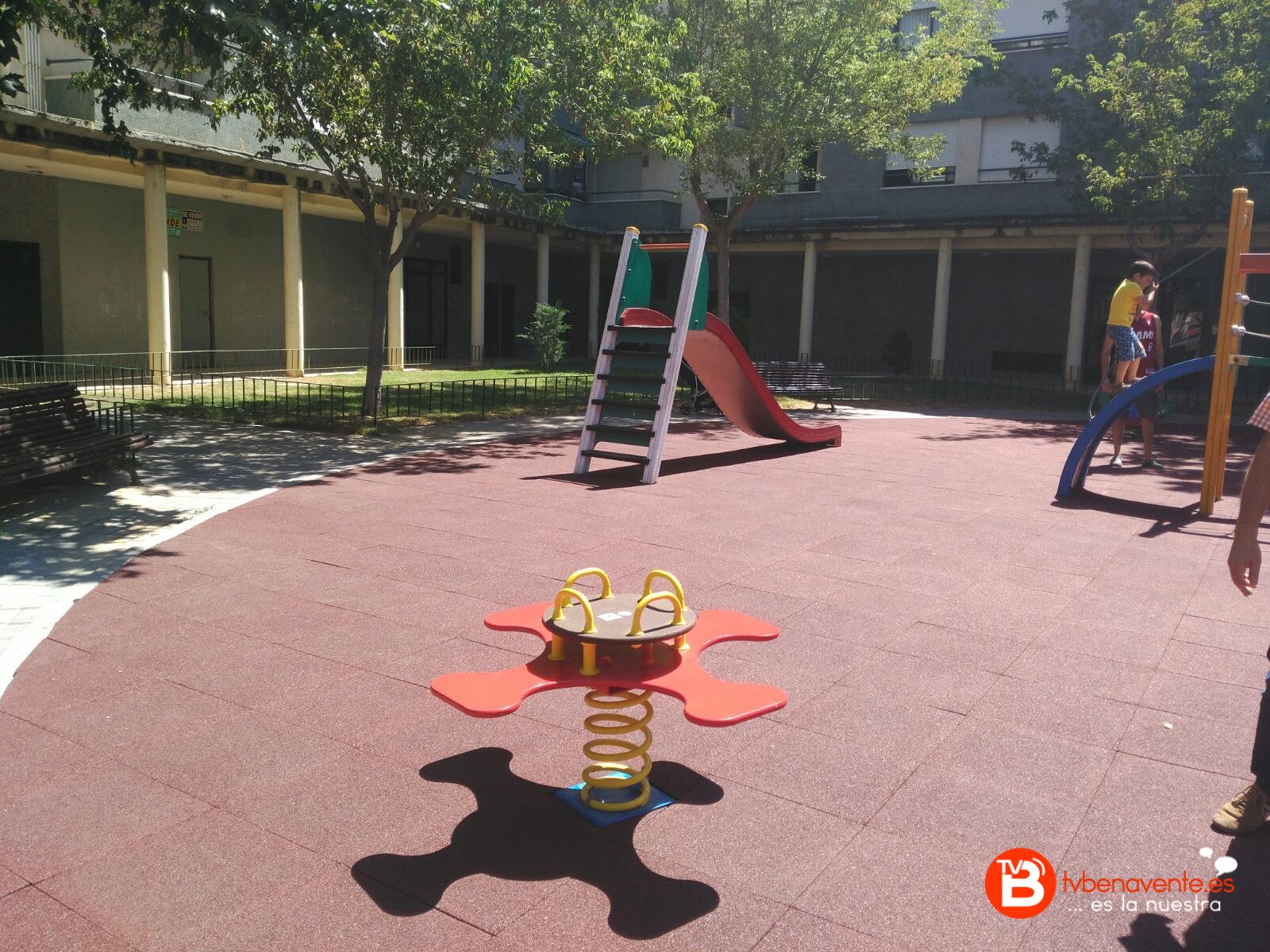 Igualmente se ha procedido a la reparación del parque infantil, sustituyendo el corcho existente que se encontraba en mal estado, así como la eliminación del arenero, sustituido por otra pieza infantil, reparación y sustitución de los elementos deteriorados, así como la pintura de los mismos.