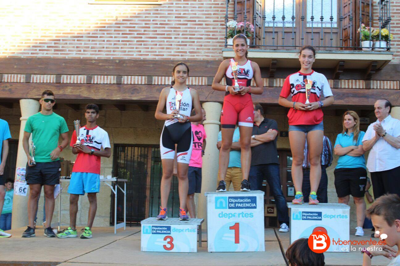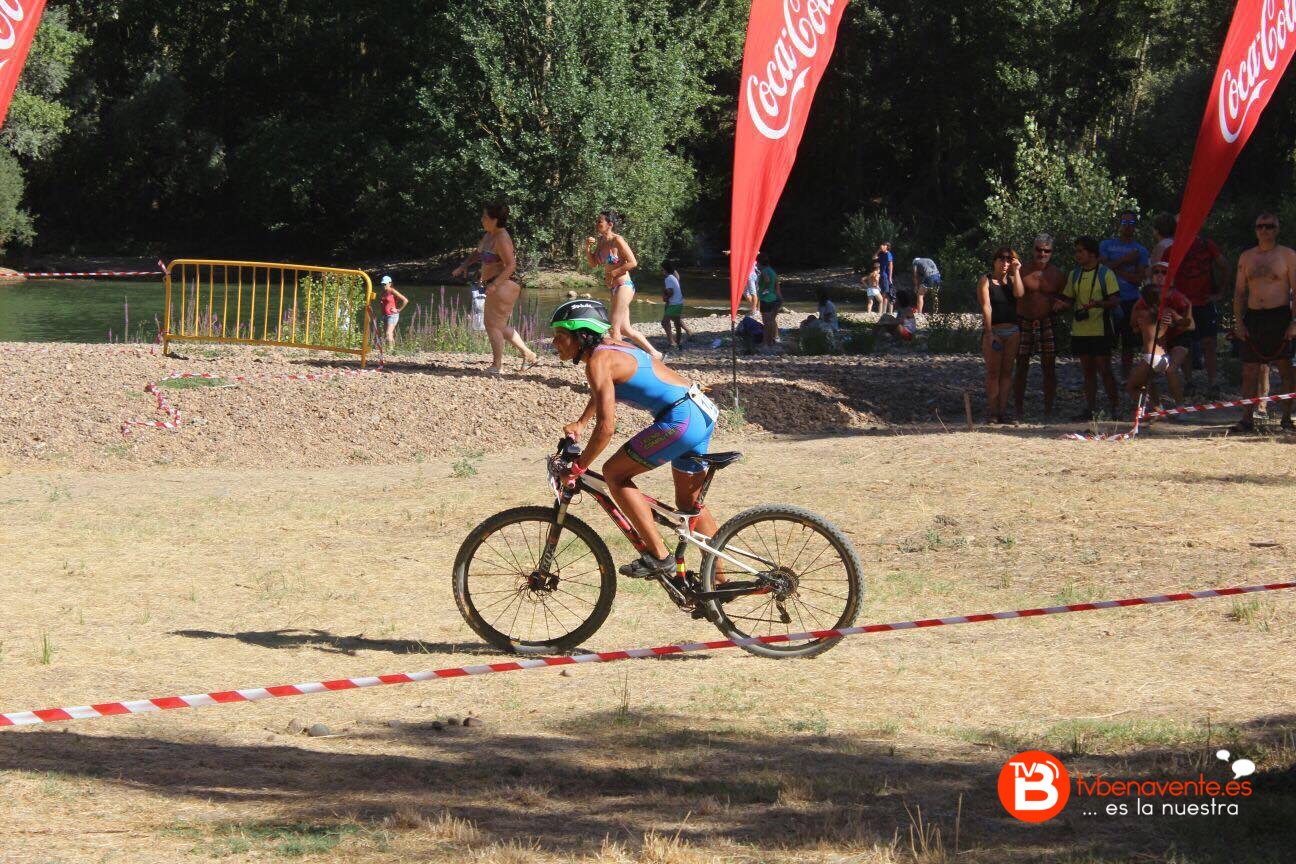 A las 5 y media de la tarde comenzó el triatlón cross con 750 metros de natación, 18 kilómetros de ciclismo de montaña y 5 kilómetros de carrera a pie. María José García se llevó la primera posición de su categoría y tercera de la general tras las dos integrantes del Triatlón Cuéllar Marina Muñoz y Esther Gómez, que vienen de competir en el campeonato de Europa de triatlón representando a la selección española.